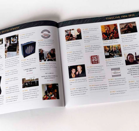 ジョージ・ベンソンによる序文から始まる本書は、ブランドの成長過程やアーティストとのつながり、これまで作ってきた製品の紹介などが100ページにわたって掲載されている。